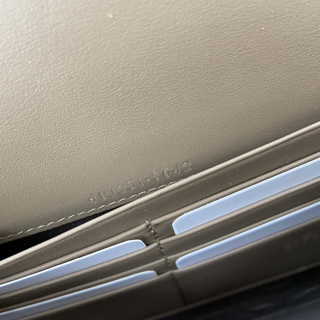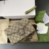 A structured GG Supreme canvas wallet on chain with our textured tiger head spur closure.