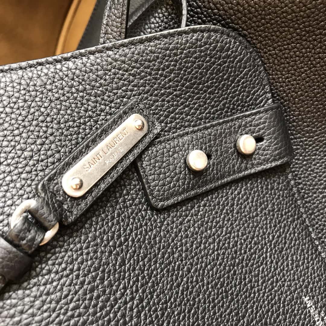 - exterior: removable leather strap with saint laurent paris engraved metal plaque