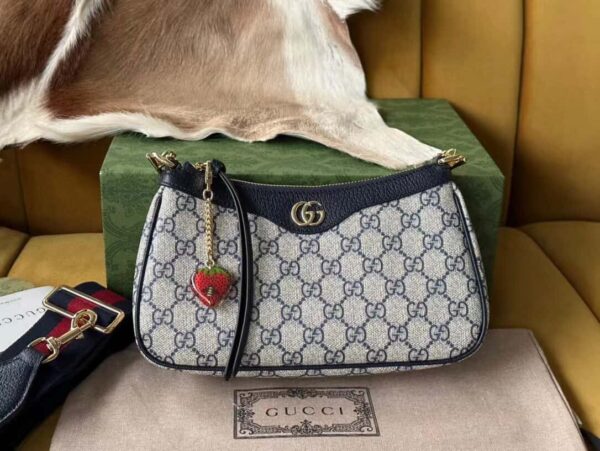 The GG logo is an evolution of the original Gucci rhombi design from the 1930s, and from then it’s been an established symbol of Gucci’s heritage. This unmistakable pattern decorates this small handbag as part of the latest Ophidia line. A Double G hardware completes the style.