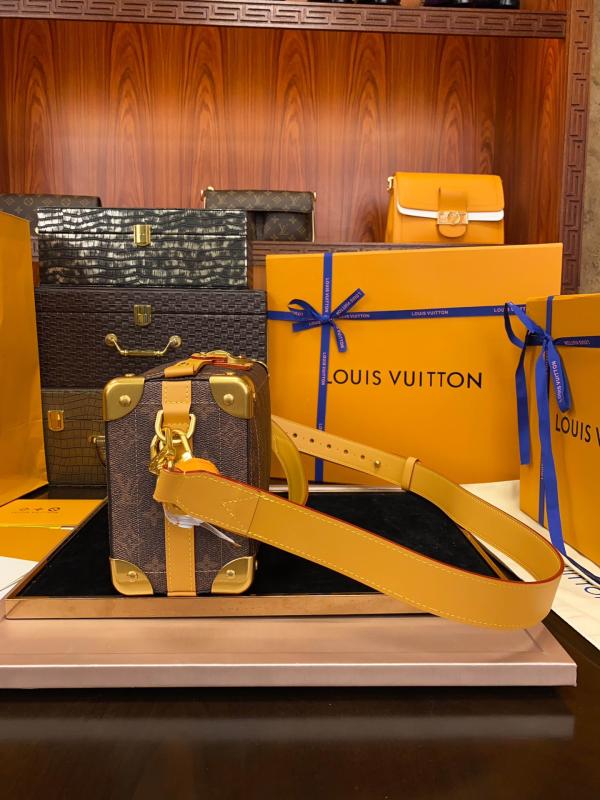 Pharrell Williams’ Soul Trunk East West bag is fashioned from Monogram Dust canvas with gold-toned reinforced corners, evocative of the House’s historic trunks. The magnetic lock gives easy access to the main compartment while the detachable leather handle and adjustable leather strap, also removable, enable hand- and shoulder-carry, as well as a cross-body wear.