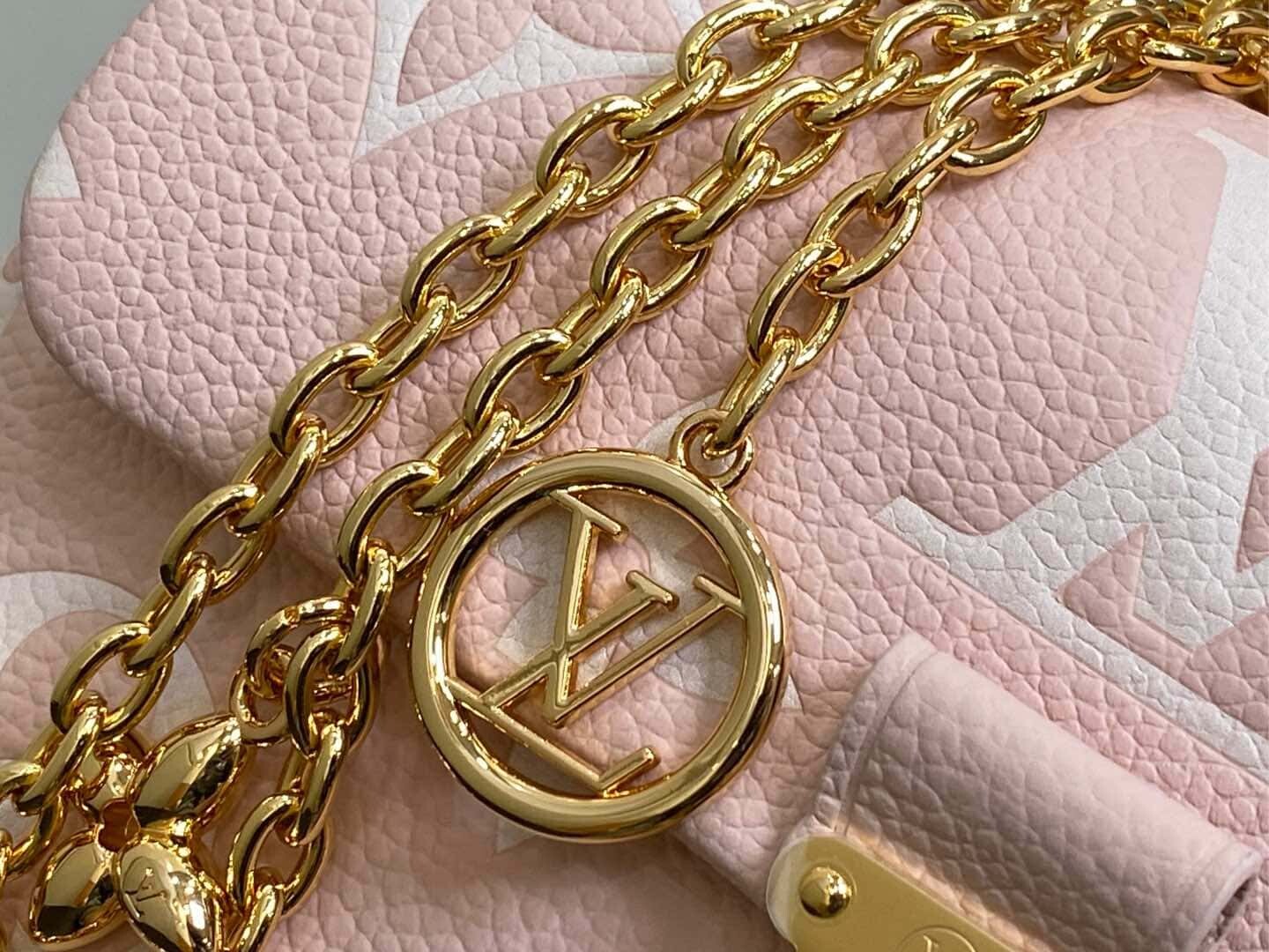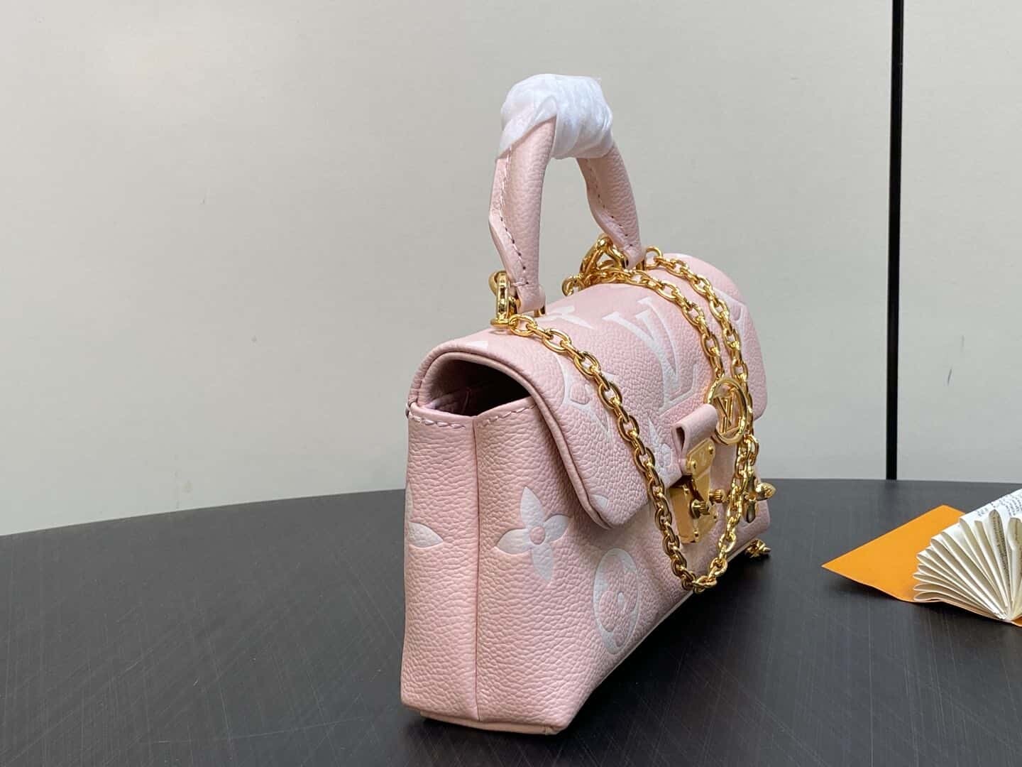 The Nano Madeleine in Monogram Empreinte leather is a miniaturized version of the emblematic Madeleine bag. It is adorned with an iconic S-lock closure and a removable chain embellished with an LV Circle charm. The versatile design is roomy enough to store everyday essentials and can be worn cross-body, over the shoulder or carried by hand.