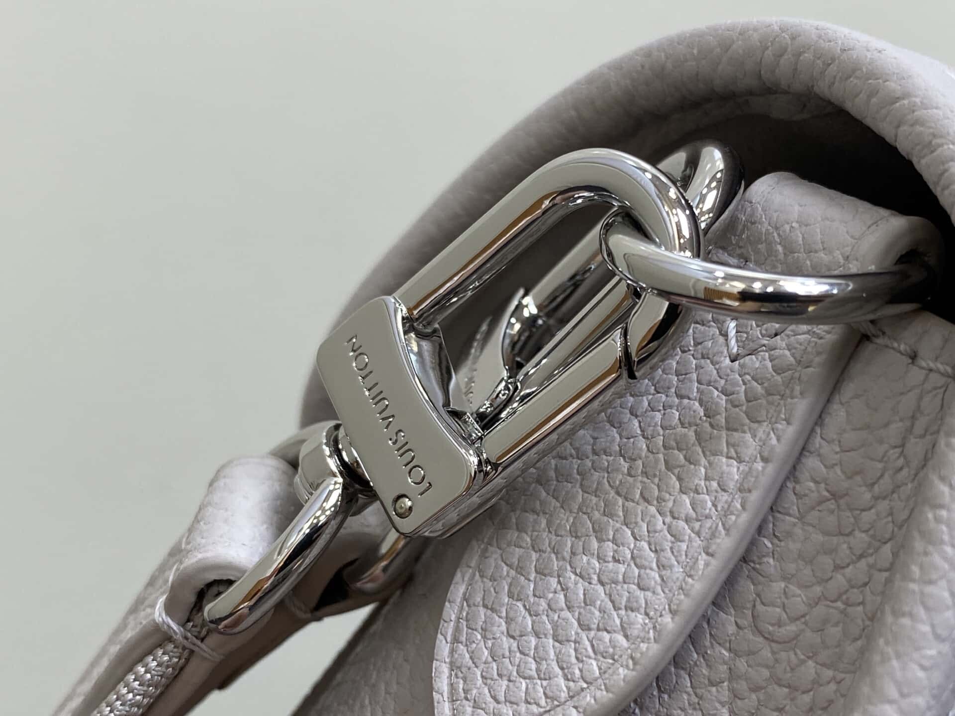 This sleek Diane handbag revisits codes from the House’s refined LV Milky Way collection. Crafted from signature Monogram Empreinte leather, it is elevated with silver-toned hardware and has a removable textile strap that lends the style a slightly sporty feel. Carry it by the shorter leather strap on dressier days.