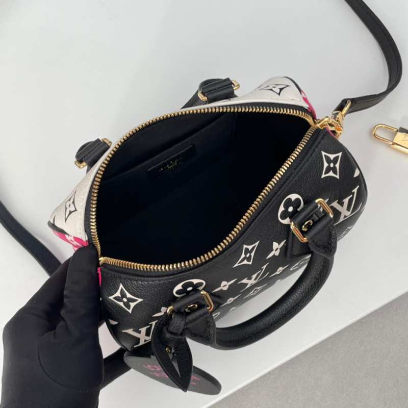 This Speedy Bandoulire 20 handbag is made of Monogram Empreinte cowhide leather. The LV M46088 surface pattern has been embossed and printed, and together with the colored leather on the side, it presents an eye-catching look.