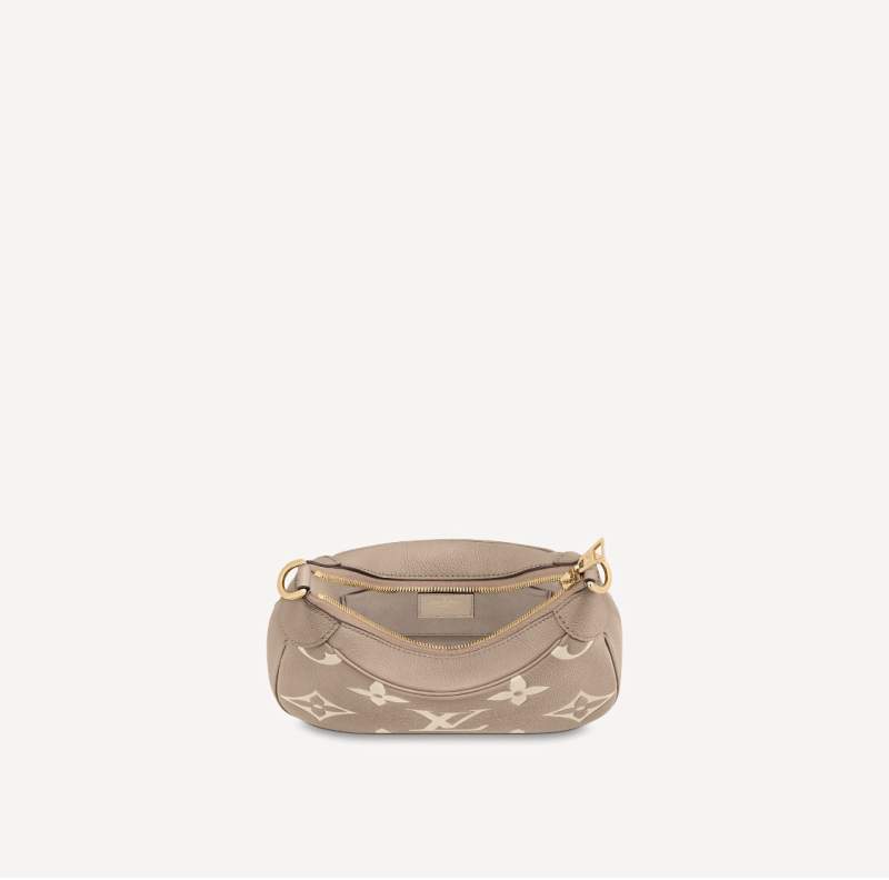 The Bagatelle mini hobo handbag is fashioned from supple, grained Monogram Empreinte leather. The embossed motif is oversized, the better to highlight the delicate color contrast of dove gray and cream. A graceful companion for any ensemble, it offers a host of stylish carry options thanks to the removable handle and detachable, adjustable strap.