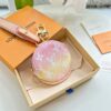 The Multipochette Lanyard keychain is connected to the detachable Monogram storage bag with a jacquard strap, making it easy to carry small items. The cowhide leather trim and the Louis Vuitton logo spring buckle and ring add elegant details.